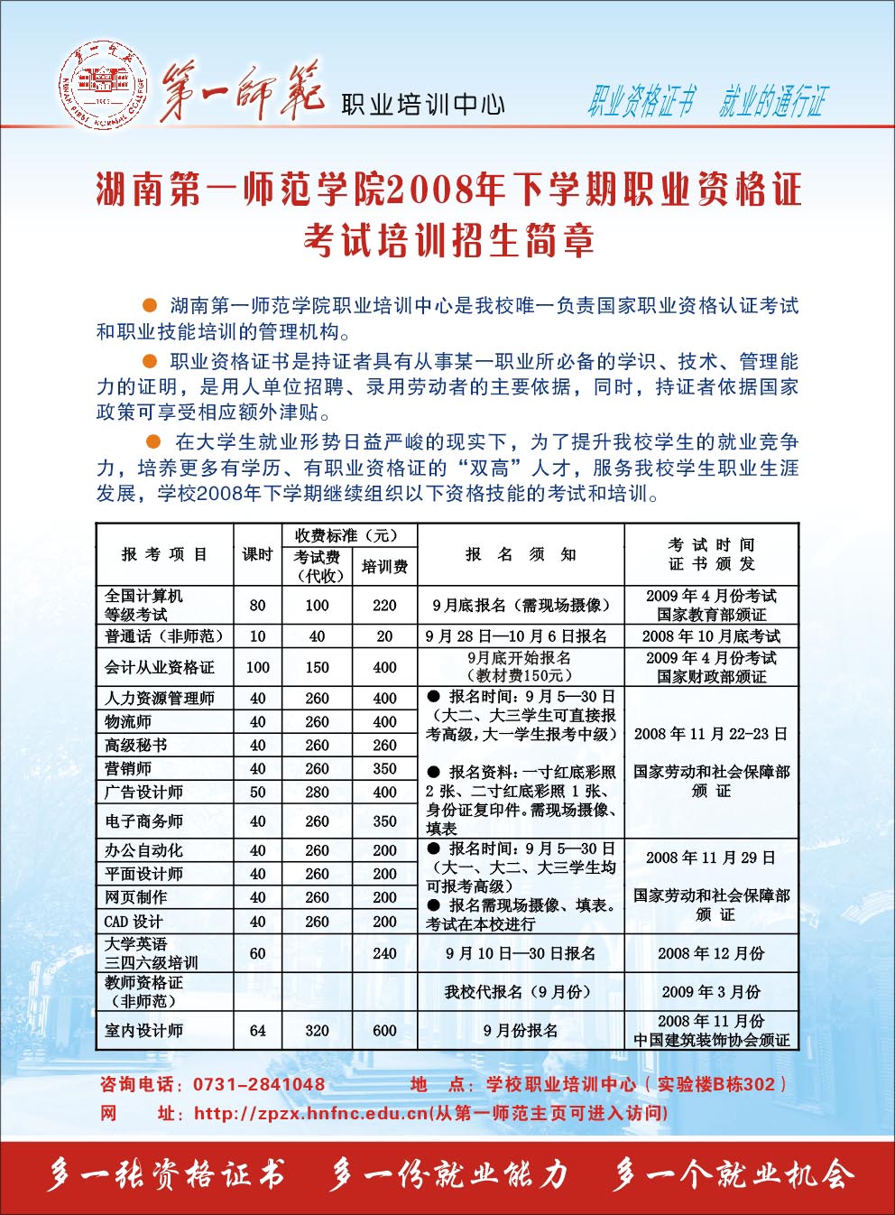 2008下学期全国大学英语等级考试培训报名通知(9月9日)