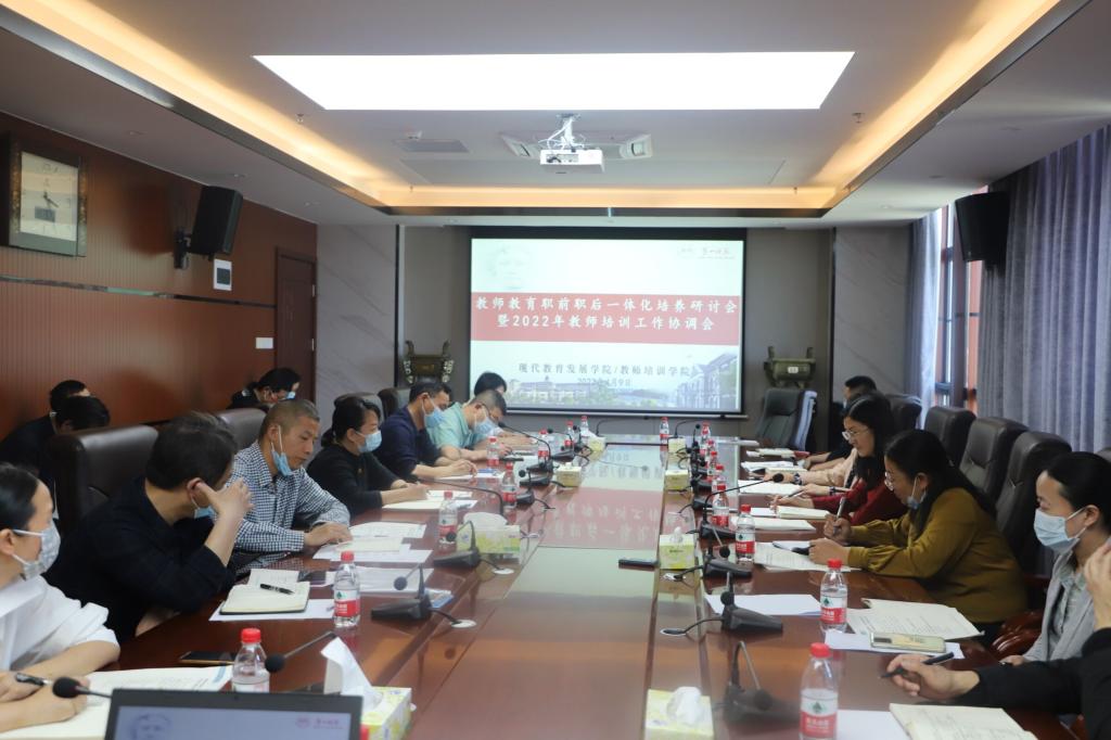 4月9日下午,公司召开教师教育职前职后一体化培养研讨会暨2022年教师培训工作协调会。公司党委委员、纪委书记李昱,公司党委委员、副董事长蒋蓉,财务处、基建与后勤处、保卫处、工会、现代教育技术与网络中心部门负责人,承办教师培训项目的二级公司教师培训工作负责人,太阳集团tyc33455负责人及相关人员参加会议。会议由现代教育发展公司党委副书记祝娅主持。