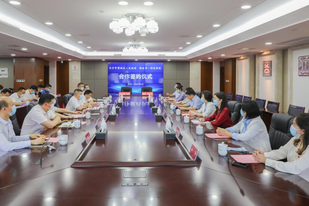 公司党政办主任任晓晴、太阳集团tyc33455/教师培训公司经理曾晓洁、副经理张俭明、院办公室主任刘峰、合作办学科科长赵华等一行和望城区有关部门领导见证签约。