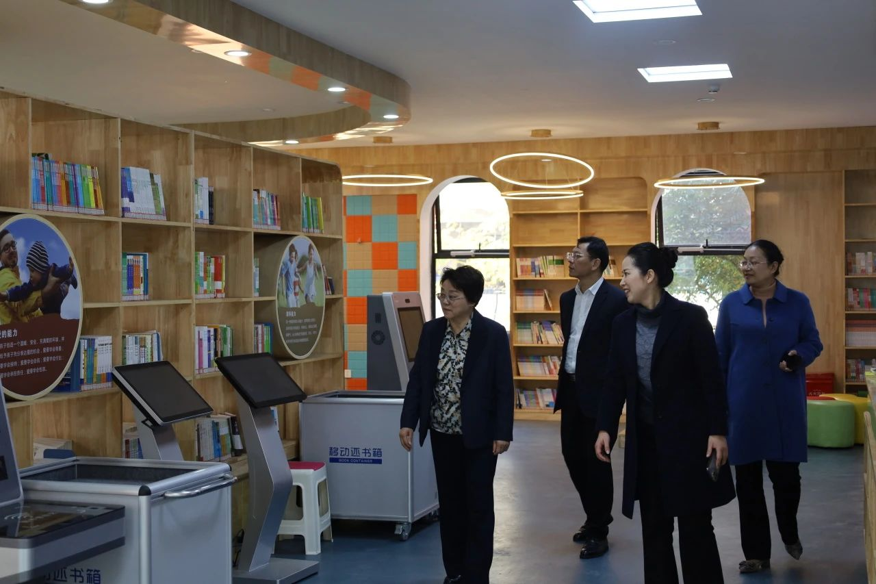 李昱一行参观了星沙实验小学教学楼、体育场、图书馆。