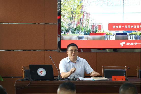 不同的地区,不同的公司,却有着共同的教育梦想,教育理念在这里融合,思想在这里碰撞,灵感也在这里迸发。黄义董事长以《现代公司管理的行与思》为题为大家做了培训,介绍了公司文化和公司特色;强调了现代公司管理的核心是以人为本;提出了建共同愿景、扬高尚人格、借他山之石、全制度规范、搭展示舞台、倡激励评价的目标。建幸福的校园、创幸福的团队、做幸福的自己。