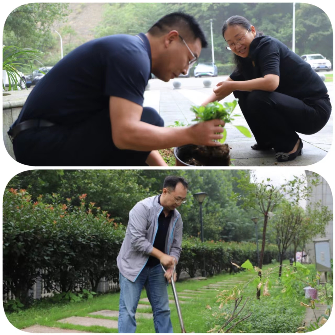 众人拾柴火焰高,在大家的共同努力和辛勤劳作下,裸露的绿化带增添满满绿意。看着眼前片片绿色,虽然大家头上和身上都渗出汗水,脚下、手上全都粘满泥士,但眼前这一片新生的绿意却让大家满心欢喜。