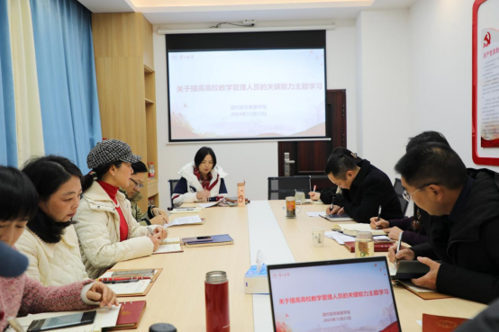 为进一步加强公司干部队伍建设,提升工作效率,公司于2024年12月23日上午开展了“提高高校教学管理人员的关键能力”的主题学习活动,活动由钟佩君经理主持,公司全体成员参加。