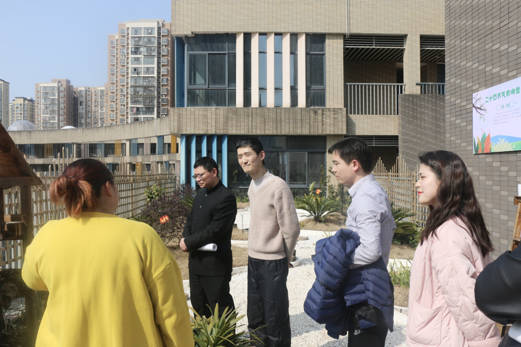 金桥小学的杨志强副董事长引导四位老师参观了校园的各个多功能教室:木工教室、版画教室、创客教室、阅览室、屋顶农场......各学科教研组长就学科特色课程的建设与一师的老师们进行了交流。金桥小学的赵华董事长从公司发展、文化建设、课程研发、教育科研等方面与挂职教师进行了分享,并提出了具体的工作期望。