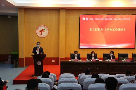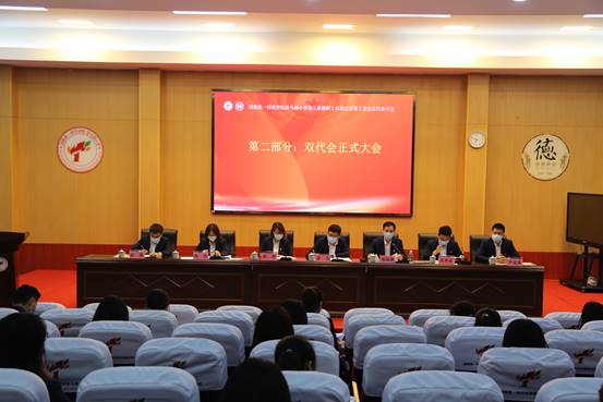 2022年5月11日18点45分,由教职工代表、列席人员参会的代表正式大会在嘹亮的国歌声中拉开了帷幕。