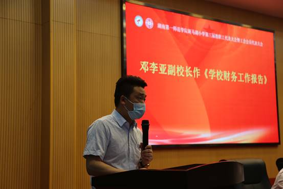 第五项议程,杨青主席作工会工作及工会财务工作报告。她从校务民主管理、关爱教职工生活、开展多彩文体活动、加强自身组织建设等方面总结了工会工作和获得的荣誉。为维护教职工合法权益、做好教师幸福工程,鼓励和动员广大教职工为公司发展戮力同心、砥砺奋斗。