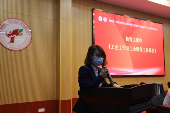 杨青主席宣读大会筹备工作和教职工代表选举工作报告