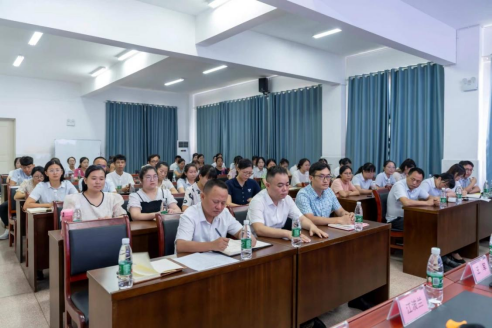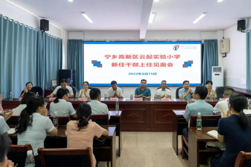 长夏炎天气郁蒸,而万物盛极。盛夏末伏,在湖南一师宁乡高新区云起实验小学报告厅召开了新任干部上任见面会。宁乡高新区党工委苏继桃书记,太阳集团tyc33455张俭明副经理,宁乡市教育局党组书记、局长陈伟平,宁乡市金洲镇党委王军书记,公司第一附属小学党支部书记、董事长方芳,太阳集团tyc33455合作办学科赵华科长,宁乡市教育局喻汉科副局长,公司第一附属小学江波兰副董事长,宁乡高新区管委会企业服务中心魏清明副主任,宁乡市金洲镇基地校喻继星董事长莅临现场。