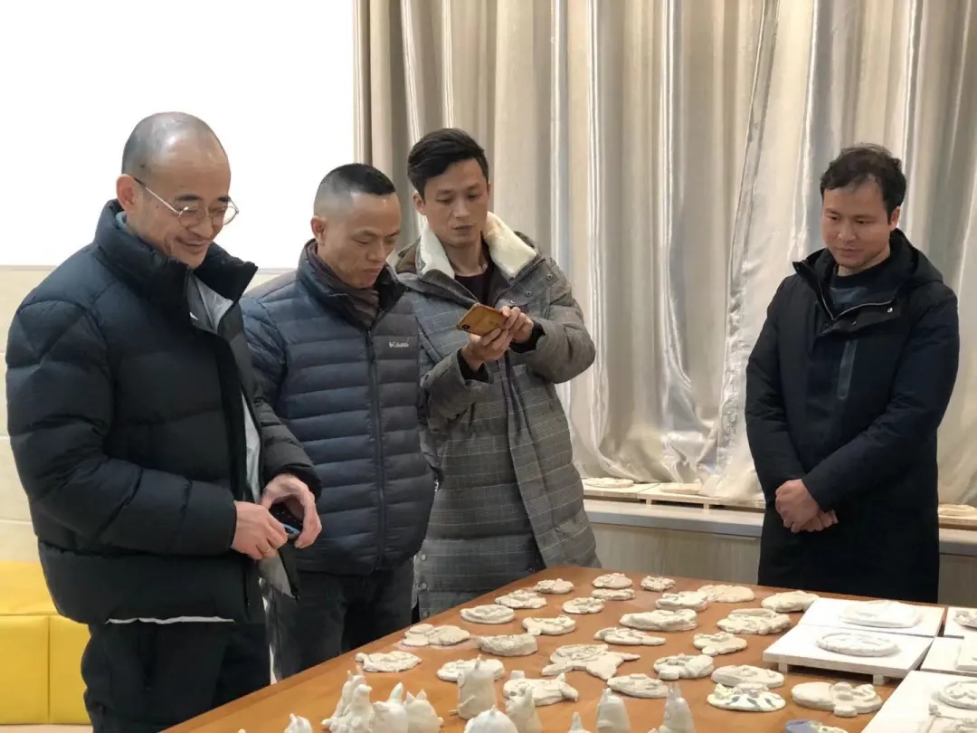 随后,范迎春一行参观了斑小综合楼四楼美术场馆,在两间陶艺教室欣赏了公司员工的陶艺手工作品,并对员工作品及后期如何开展陶艺教学进行了有效的指导。李齐提出,小学应该构建低、中、高阶梯式陶艺教学体系,结合不同阶段的员工学情特征编写陶艺校本教材,突破陶艺教学中容易出现的审美疲倦、简单重复等问题,让陶艺课程拥有相对稳定的持久度和科学的延续性,让校本教材系统化、阶梯化。范迎春也指出,课程从低到高的递进,能保持员工学习的新鲜度,让书法与陶艺融合,开展具有望城特色的陶艺教学。