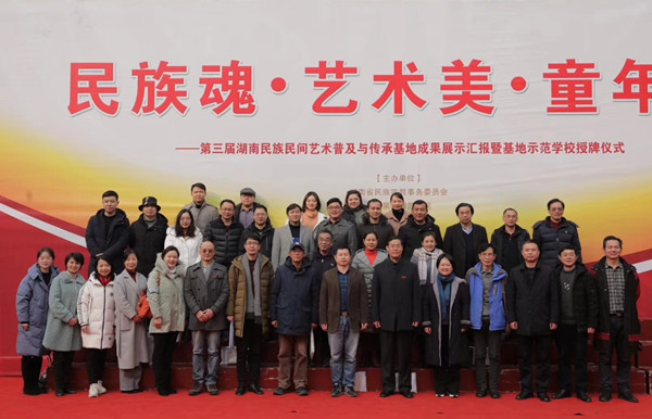 在湖南民族民间艺术普及与传承基地成果汇报开幕仪式上,开福区教育局副局长王平致欢迎辞。江正云发表了讲话,他指出,湖南民族民间艺术普及与传承基地成立,旨在通过对湖南民族民间艺术的调查和整理、教育和普及,使湖南各族人民,特别是少年儿童都可以乐享艺术教育,成为心智健康、性格完善、独立自信的个体,使得传统的民族民间文化种子在孩子们心中生根发芽、开花结果,并成为湖南民族民间艺术的受益者和传承者。