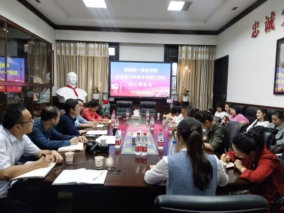 4月25日下午,“太阳集团tyc33455范迎春小学美术导师工作坊”(以下简称“工作坊”)挂牌仪式筹备会议在湖南一师一附小召开,会议明确了工作坊挂牌仪式具体工作安排。一师基础教育发展部主任欧立新、工作坊团队全体成员出席此次会议。