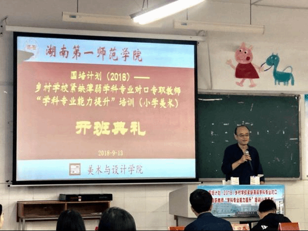 9月12日到9月19日,“国培计划(2018)”乡村公司紧缺薄弱学科专业对口专职教师“学科专业能力提升”(小学美术)培训班在公司举办。 本次培训班的学员主要由来自湖南省内乡村各教学点村小的美术教师组成,共70人。为提高培训的针对性和时效性,首席专家美术与设计公司经理范迎春教授带领培训团队开展了前期调研,多次商讨并最终确定培训方案。培训紧贴乡村教学点村小的美术教师需求,聘请了多位省内外知名专家、学者、一线教师为培训班开展讲座和示范。 开班的第一天,华东师范大学的钱初熹教授为全体学员带来了一堂名为《以创意思维为优先发展目标的美术教育理念与教学实践》的讲座。钱初熹老师带领学员接触到不一样的美术教学理论,引起了学员们对孩子们创意思维培养的兴趣,并对中外美术教育理念有了新的认识。中央美术公司的马菁汝教授带来的讲座是《中西美术教育比较》。课堂上,马教授讲到了中西方美术的差异,国外美术教育的现状与发展趋势,为学员们带来了最前沿的美术教育理念。浙江湖州吴兴实验中学的徐军老师针对传统民间艺术的探索开设了《基于传统文化的美术拓展性课程实践与研究》专题讲座,激发学员们探寻民族民间艺术运用于教学的兴趣。除了省外专家的专题讲座,省内专家、公司首席专家和一线优秀教师和青年画家为学员们上了丰富的具有实践意义的教学示范课。 为增强教学效果,培训班还组织学员们前往天心区小鱼儿画室进行名师课堂现场观摩、实地考察。学员们通过观察、交流,开阔了眼界。 培训结束时,学员们纷纷表示此次培训收获很大。在培训中真正理解和体会到了一种全新的现代教学理念和教学模式,必将在今后工作中,为我国的乡村小学美术教学贡献自己的力量,培养出更多适应现代社会的高素质人才。