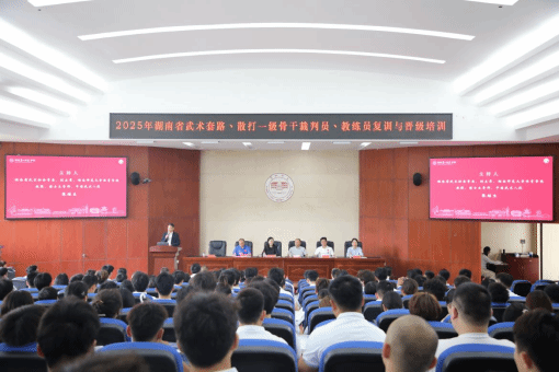 湖南省武术协会主席杜利民在讲话中指出,武术是中华民族的瑰宝,近年来湖南省武术事业发展迅速,赛事活动日益丰富,但裁判员、教练员队伍的专业素养提升至关重要。此次培训邀请了业内资深专家授课,内容涵盖武术套路、散打最新规则、裁判法及教学训练方法等,希望学员们珍惜机会,提升业务能力,为湖南武术事业发展贡献力量。